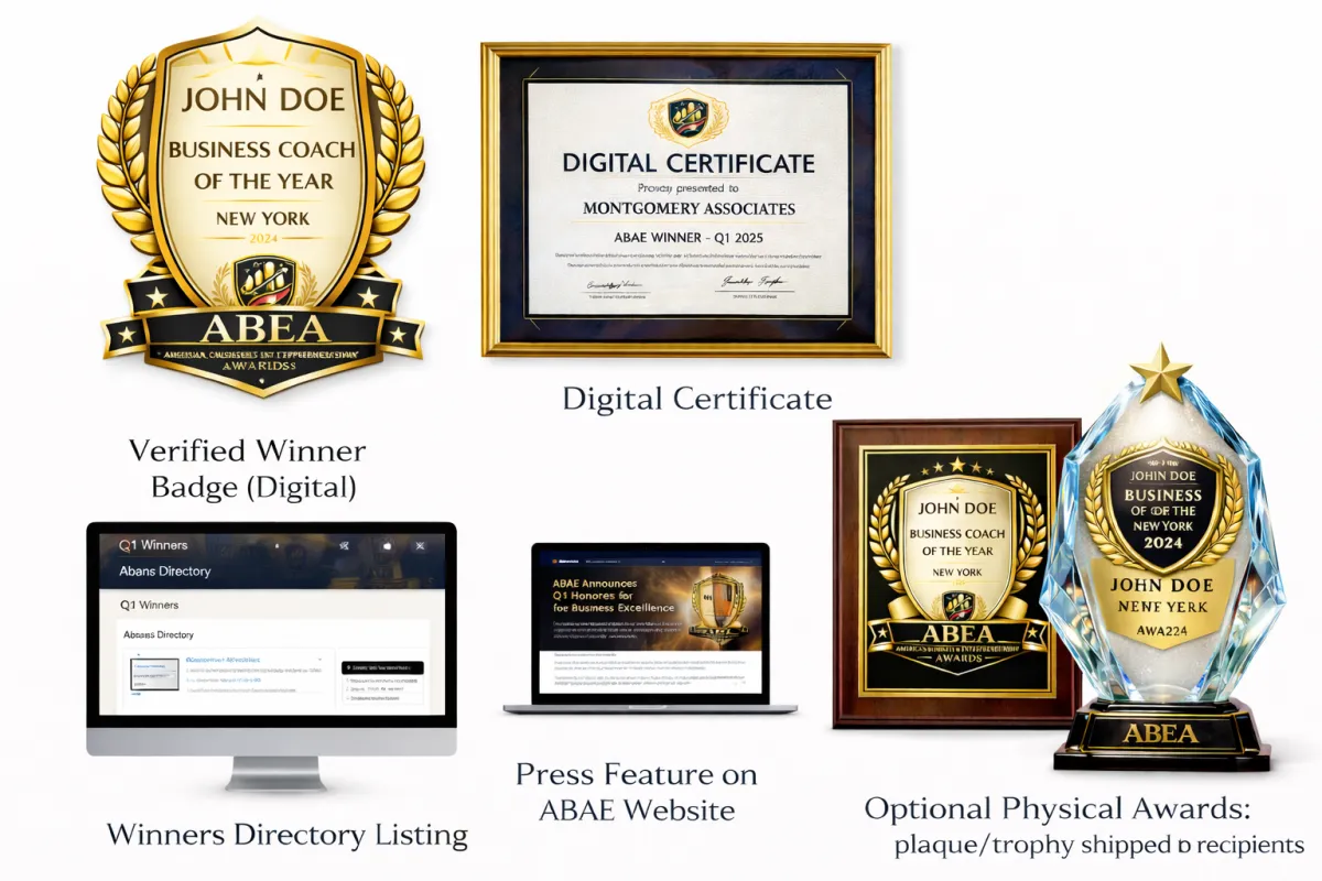 Each quarter, ABAE selects outstanding honorees across key categories. Winners receive verified recognition, a directory listing, and a press feature on our platform.